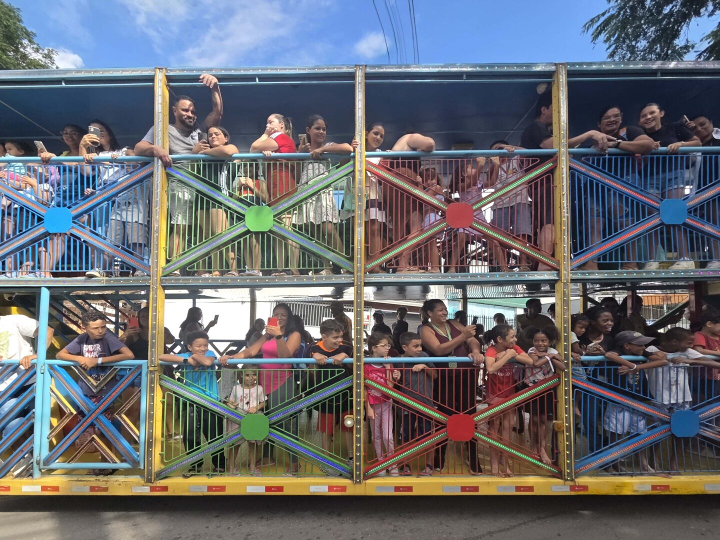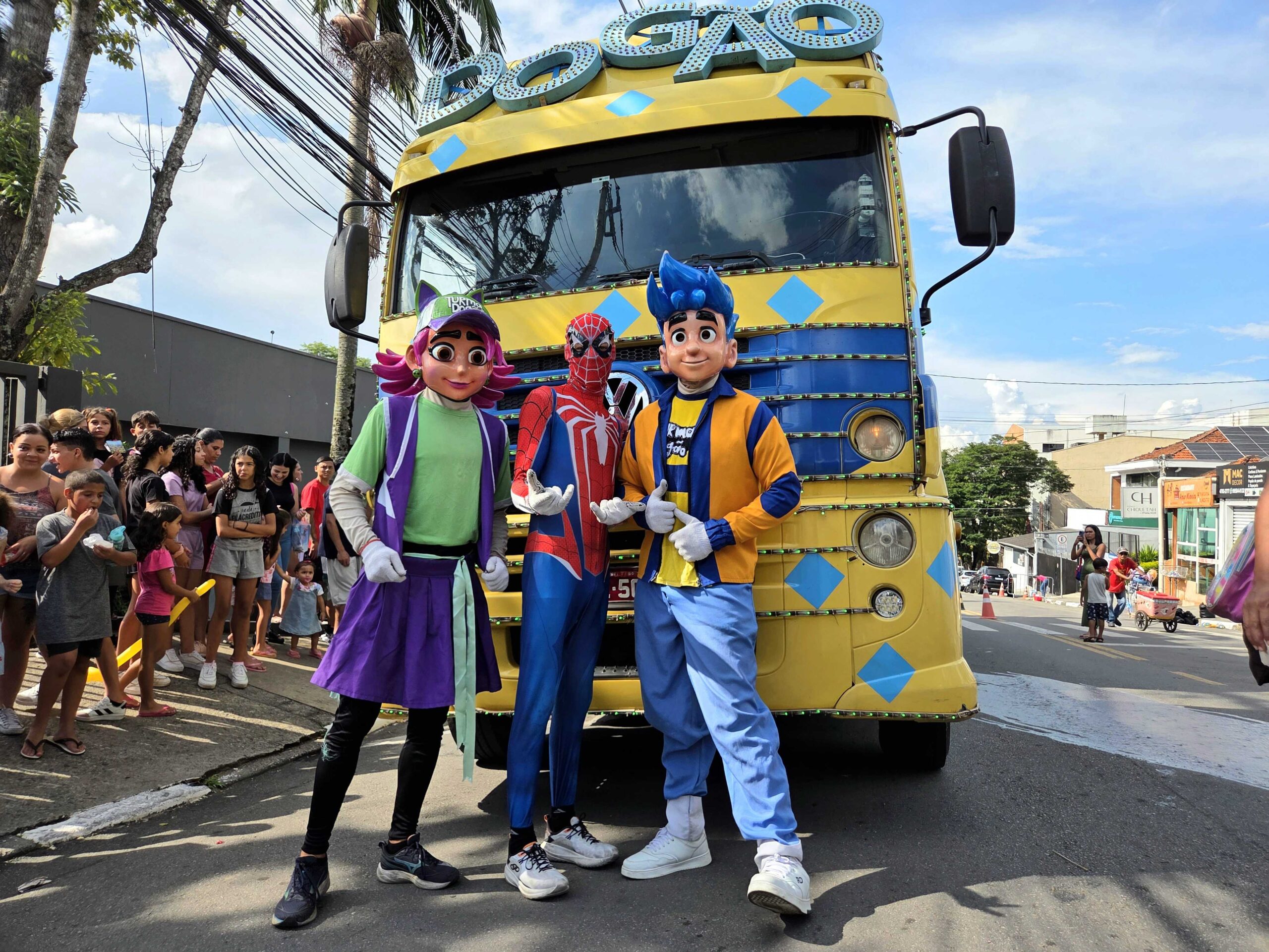 Durante todo o dia, o recinto de eventos em frente à Prefeitura foi ocupado por famílias inteiras. Crianças de todas as idades aproveitaram o parque de brinquedos infláveis, enquanto a Carreta do Dogão circulava com seus personagens, arrancando sorrisos pelas ruas. Entre uma brincadeira e outra, não faltaram pipoca e algodão doce — aquele combo clássico que transforma qualquer tarde em memória afetiva.