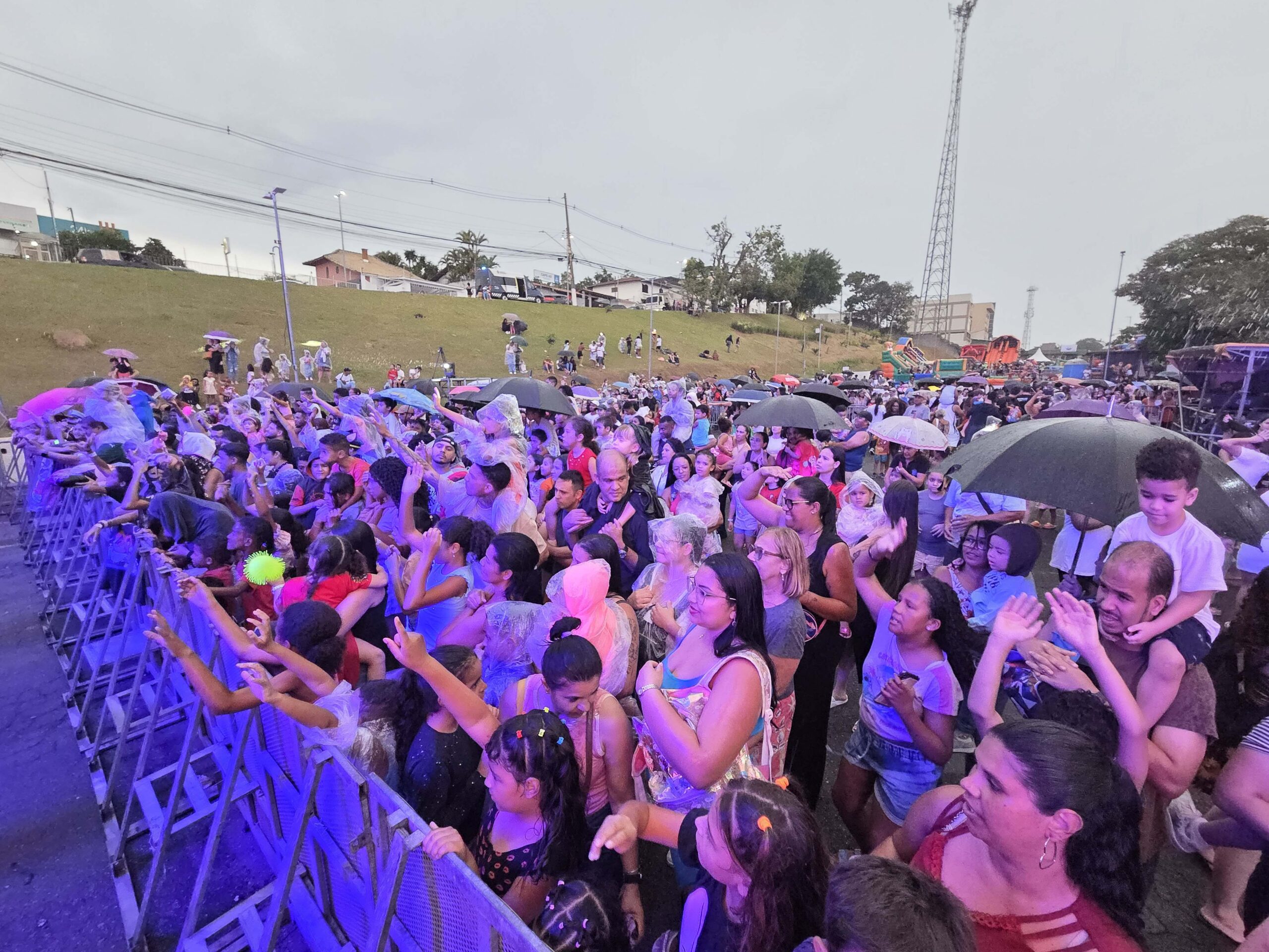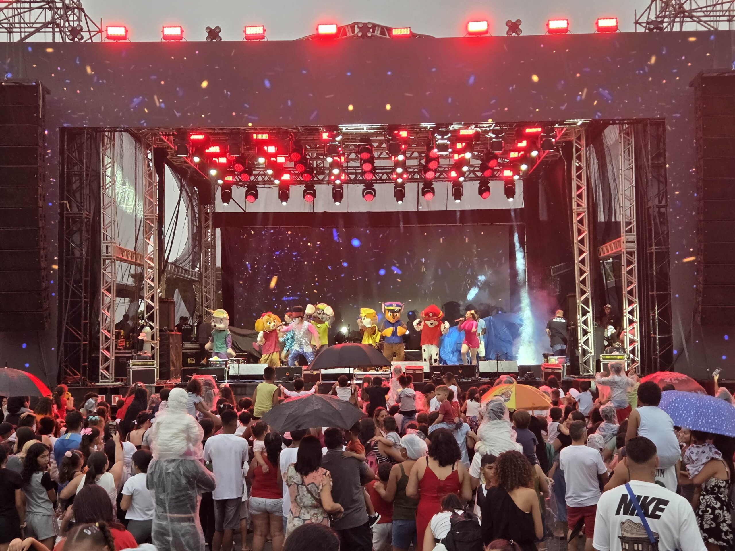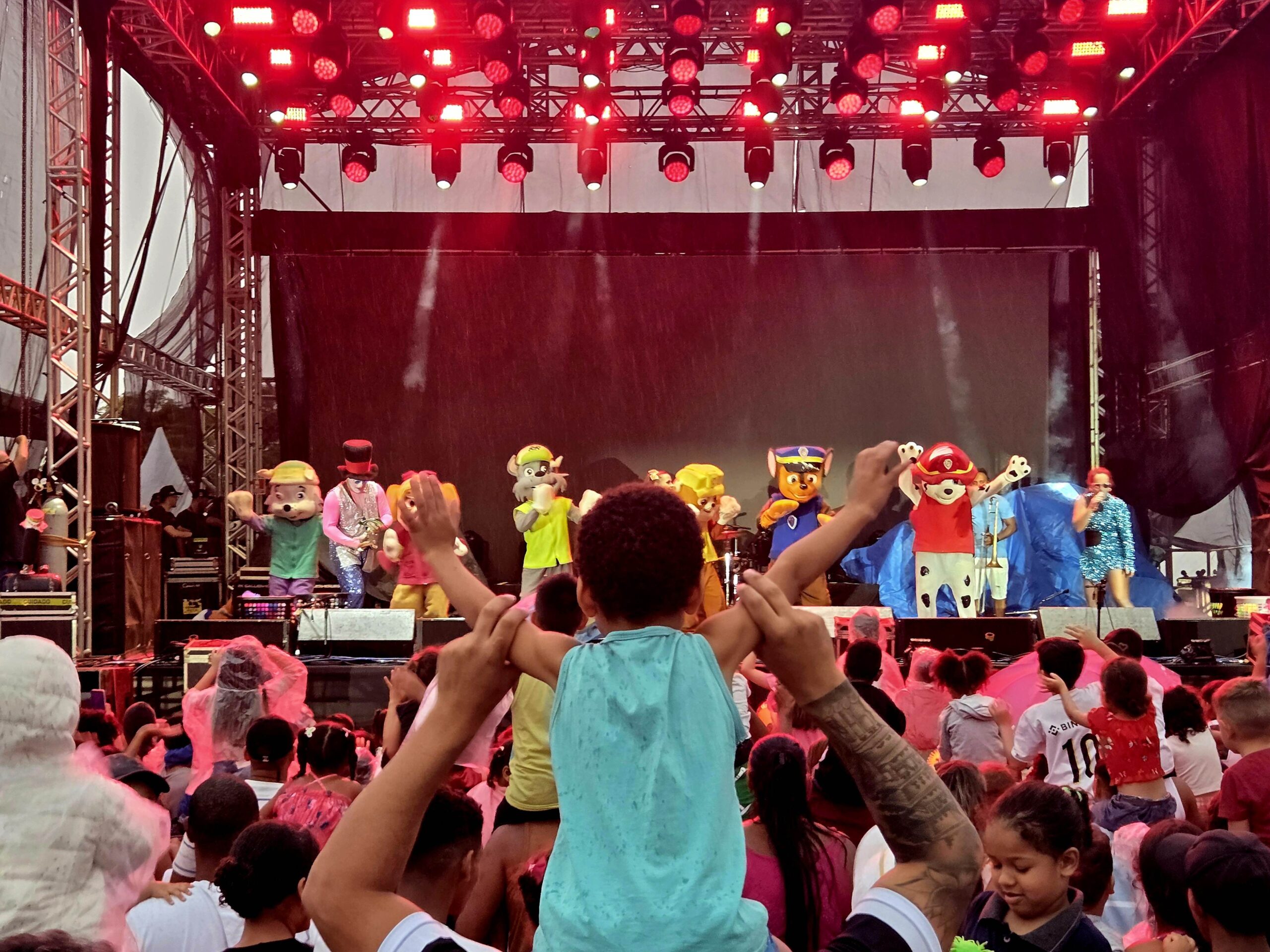 Para encerrar a programação infantil, os personagens da Patrulha Canina subiram ao palco já sob chuva. Mas, ao contrário do que se poderia esperar, o público permaneceu firme, mostrando que animação por ali não era coisa passageira.