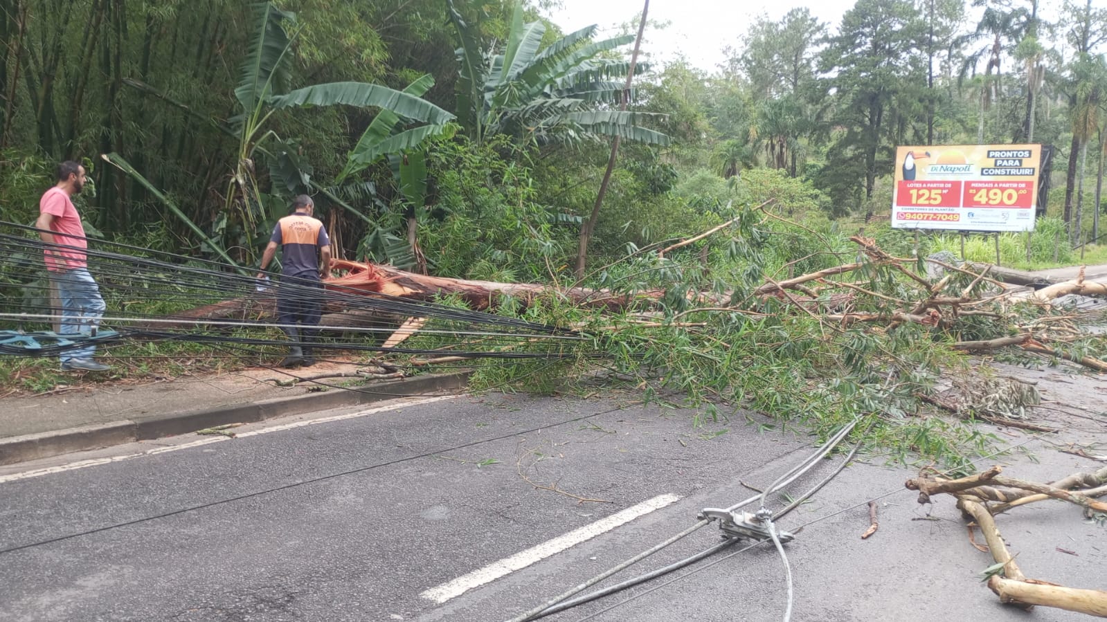 Em casos de queda de árvore sobre fiação, a orientação é que o munícipe entre em contato com a Enel. Ocorrências com vítimas devem ser comunicadas ao Corpo de Bombeiros.