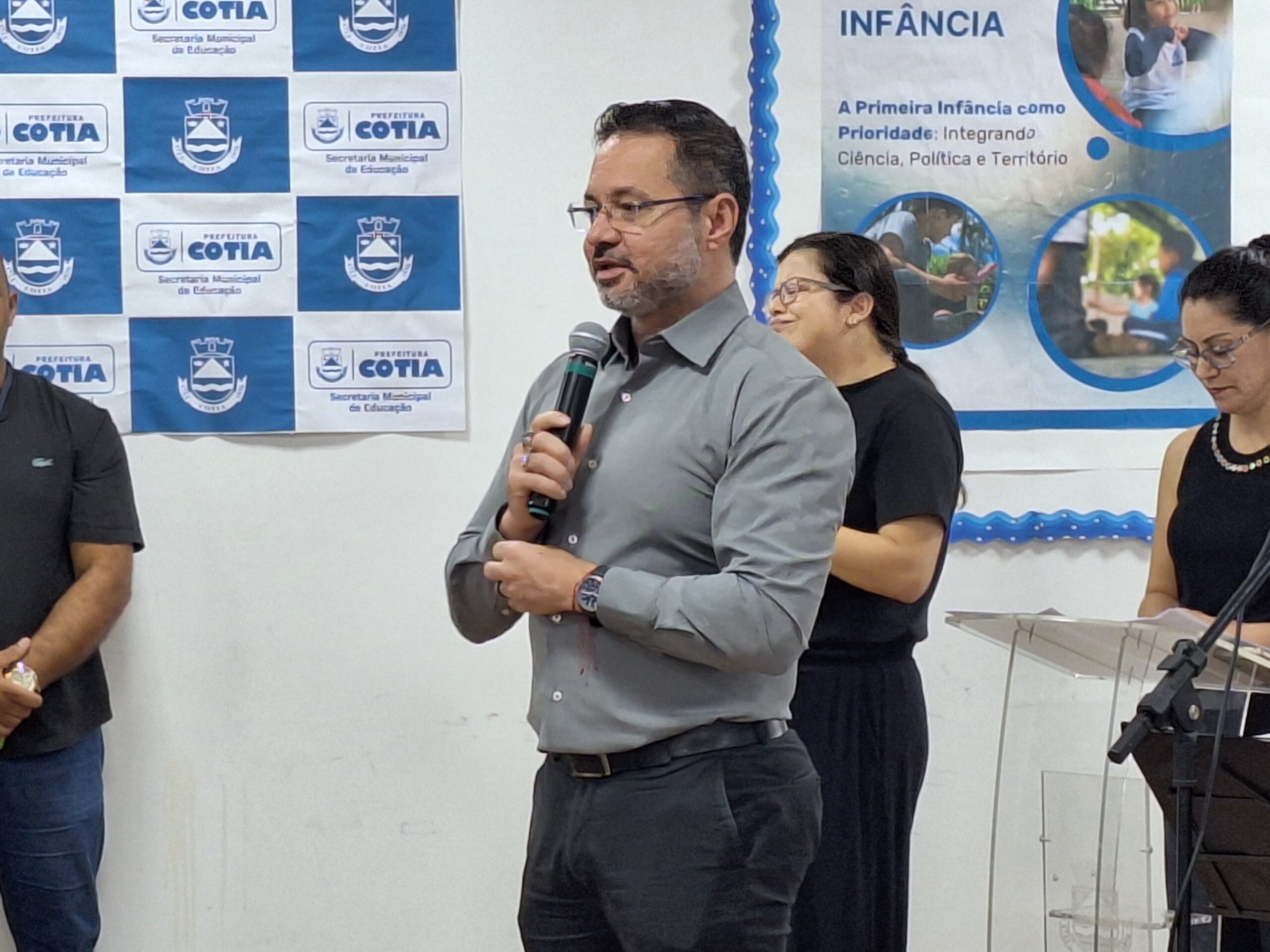 “Um dia emocionante”, iniciou a Secretária de Educação de Cotia, Ana Paula dos Santos, ao abrir a conferência. “A primeira infância é a base do desenvolvimento humano. São as composições de nossa infância que nos tornam o adulto que somos hoje. E os gestores têm papel extremamente importante”.