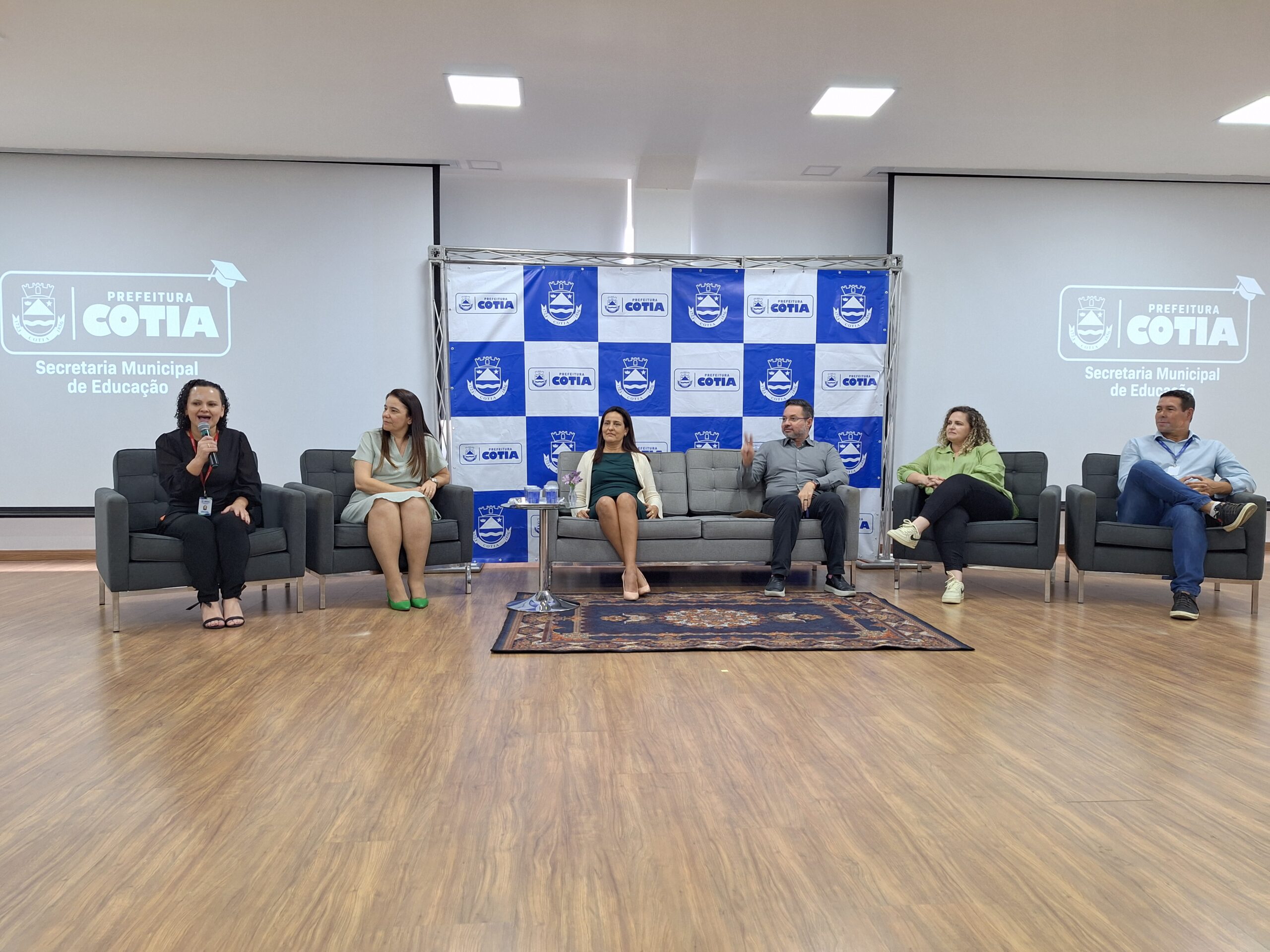 A segunda mesa redonda discutiu as prioridades da primeira infância com a presença do secretário adjunto do Meio Ambiente, Wagner Neves, do chefe de gabinete do prefeito Edgar de Souza , a professora Débora Cardoso (Território das Crianças) e a médica pediatra da Secretaria de Saúde de Cotia, Deise Tanzi.