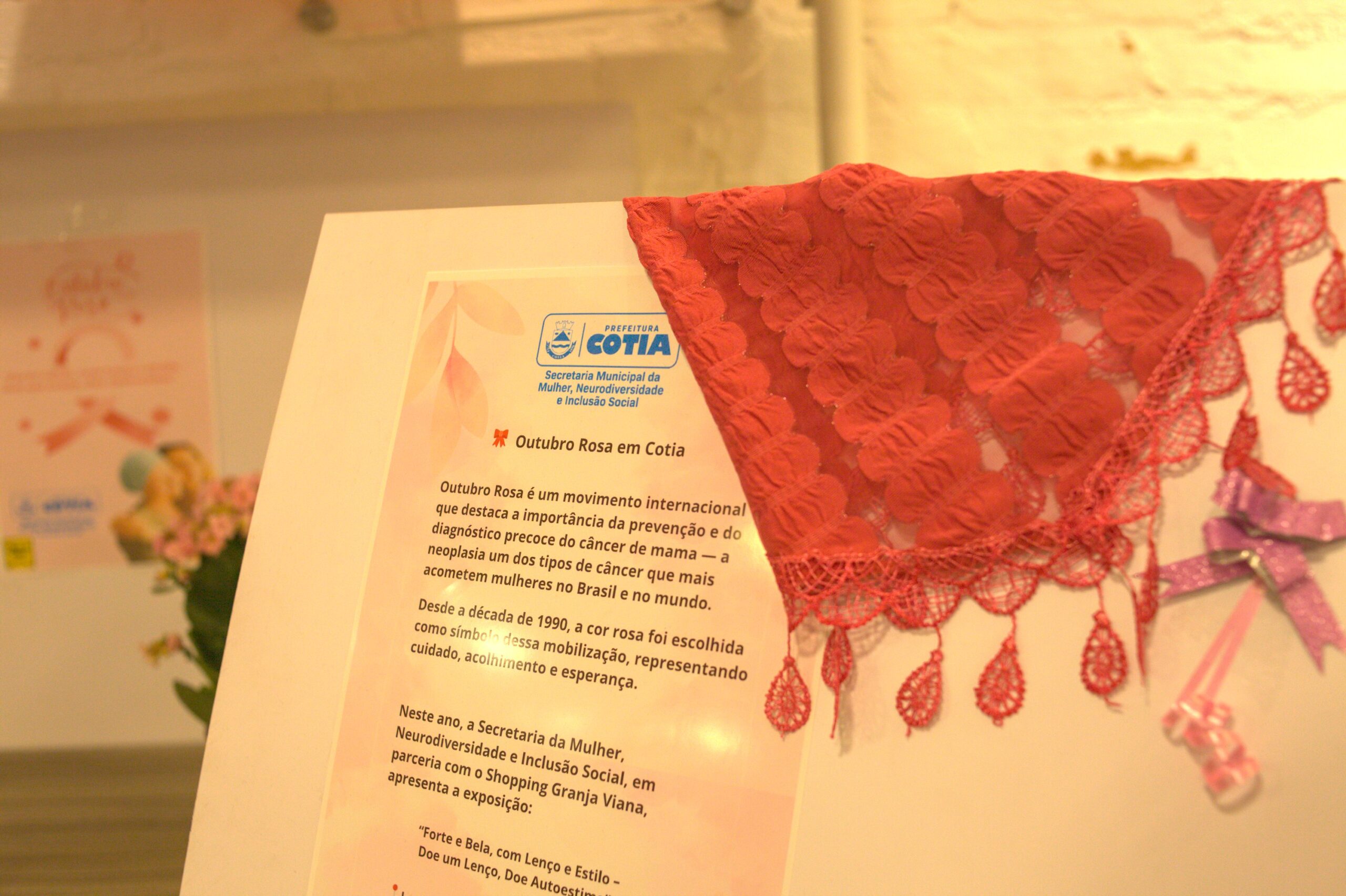 Na terça-feira (28/10/25), a Secretaria da Mulher, Neurodiversidade e Inclusão Social de Cotia, em parceria com o Shopping Granja Vianna, encerrará a programação da Campanha Outubro Rosa com mais uma edição da Roda de Conversa Superação de Mulheres após o Câncer de Mama. A participação é gratuita e também marcará o encerramento da exposição “Forte e Bela com lenço e estilo. Doe um lenço, doe autoestima” que acontece no piso 1, loja 227, do shopping. A primeira roda de conversa aconteceu no dia 16.