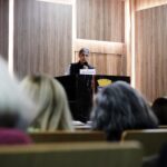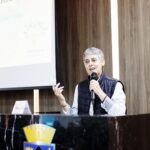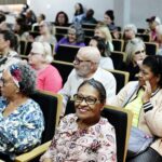 A primeira palestrante foi Gabriela Raggi, fisioterapeuta pós-graduada em Geriatria e Gerontologia pelo Hospital das Clínicas da Faculdade de Medicina da USP, Terapeuta Ayurveda, formada em Hatha Yoga. Gabriela trouxe informações sobre cuidados com a saúde física e mental, frente à crescente expectativa de vida da população. “O que vamos fazer com esta vida mais longa?”, indagou, para explicar que exercitar o corpo e a mente são fundamentais para uma vida longínqua e saudável. E como aliados estão: alimentação balanceada, qualidade no sono, atividades físicas, leitura, meditação, aprendizado de novas habilidades, entre outros.