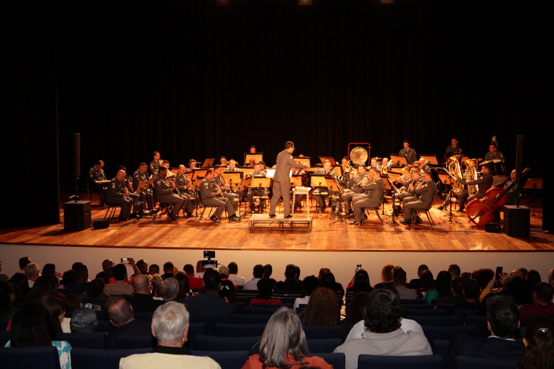 A Banda Sinfônica da Polícia Militar presenteou o público com a primeira apresentação. Sob regência do Major Músico PM Jássem Feliciano, o repertório passou do cancioneiro popular ao clássico, e MPB. E agradou.