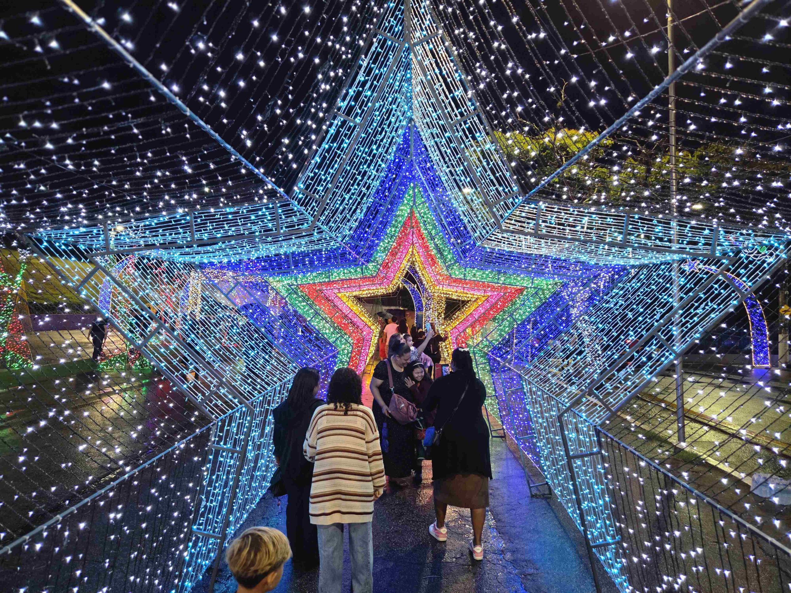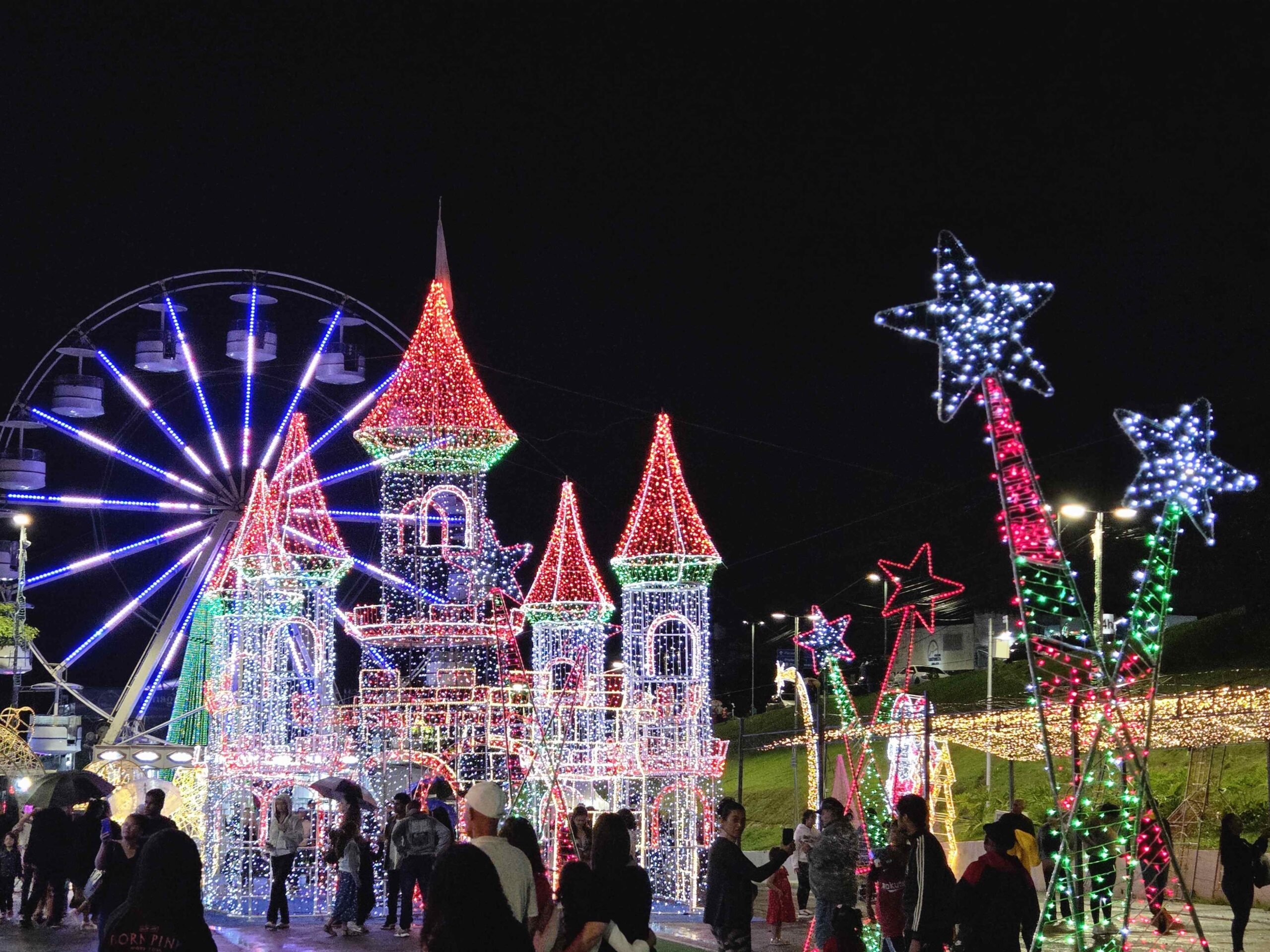 No sábado (13) em frente a Prefeitura não foi diferente. A festa começou com muitos guardas-chuvas mas logo a chuva passou e a emoção tomou conta do público quando as luzes se acenderam. O evento também contou com a apresentação da Cantata de Natal da Igreja Assembleia de Deus.