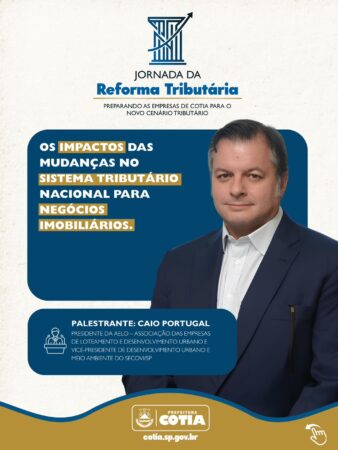 O encontro contará com a participação do empresário Caio Portugal, que abordará as principais alterações no sistema de impostos e seus reflexos para os negócios imobiliários. Além de atuar na cidade, ele é presidente da Associação das Empresas de Loteamento e Desenvolvimento Urbano (AELO) e vice-presidente de Desenvolvimento Urbano e Meio Ambiente do Secovi-SP.