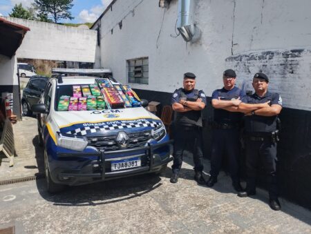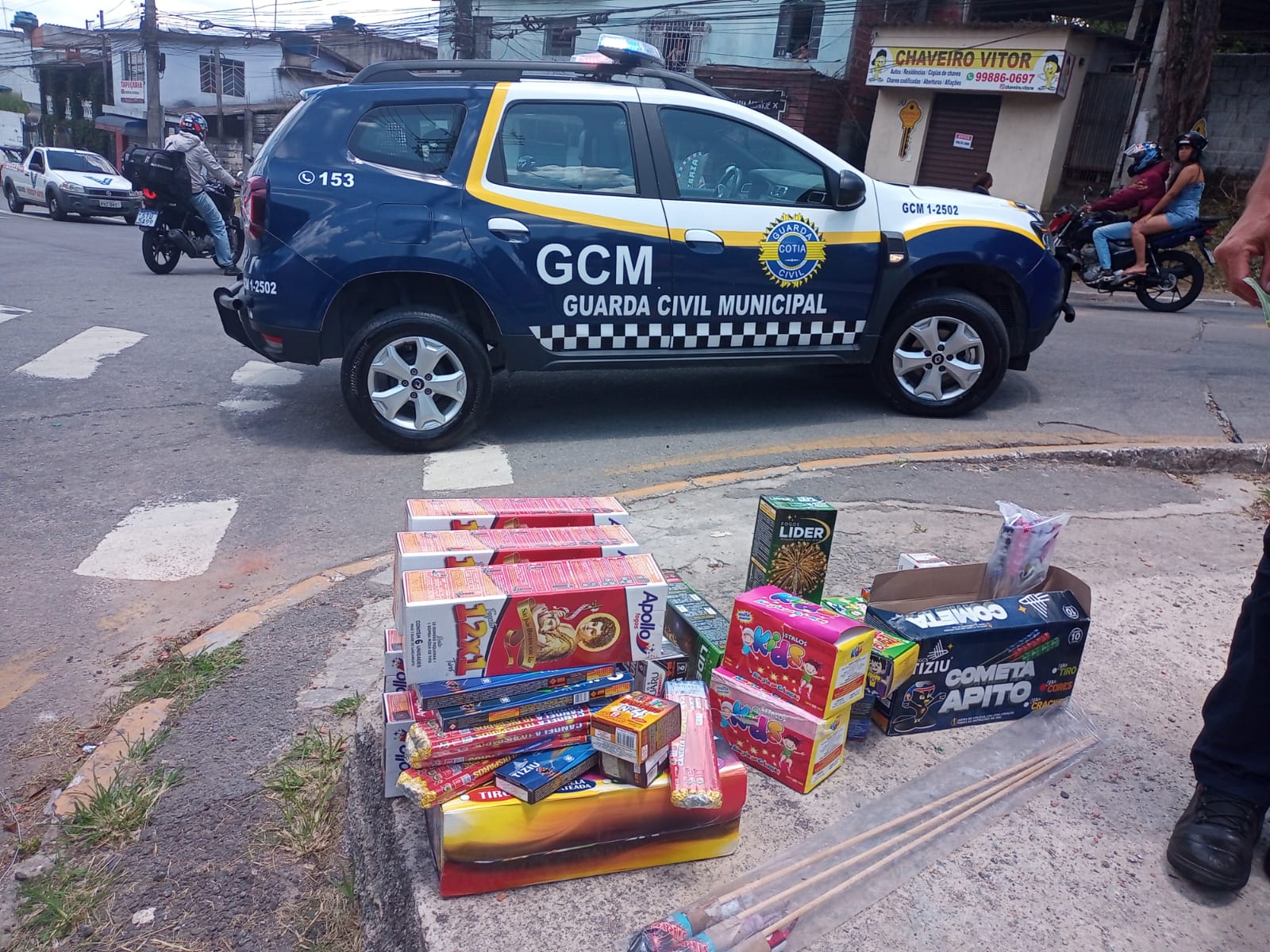 A Guarda Civil de Cotia prendeu na manhã desta terça-feira (23) três homens que vendiam irregularmente fogos de artificio na via pública, no Distrito de Caucaia do Alto.