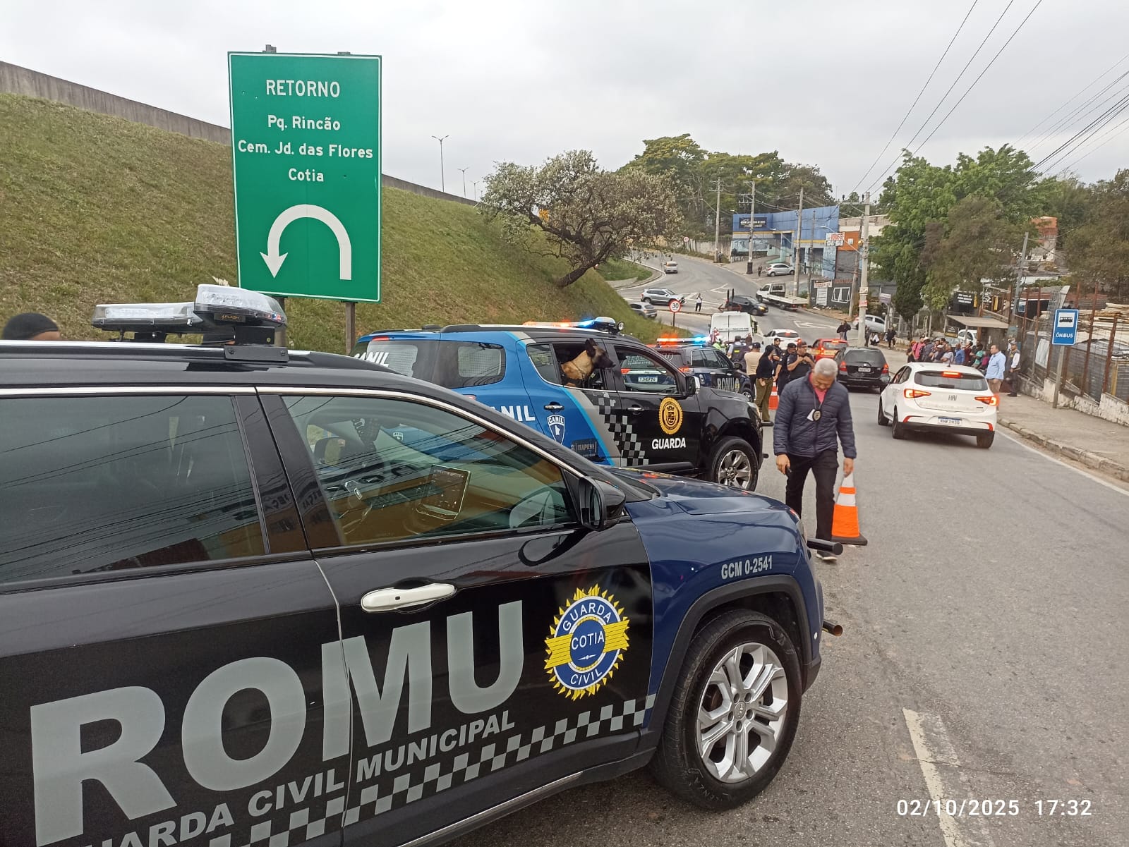 Na tarde de quinta-feira (2/10/2025), a equipe de Rondas Ostensivas Municipais (ROMU) de Cotia foi acionada para atendimento de uma ocorrência de roubo de motocicleta, na Alameda Tuca, altura do retorno do km 30 da rodovia Raposo Tavares. Um Guarda Civil da cidade de Itapevi presenciou o assalto e baleou os dois indivíduos. Os criminosos abordaram a vítima utilizando outra motocicleta que havia sido roubada no dia anterior.
