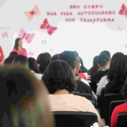 Na última semana de outubro, a Secretaria de Desenvolvimento Social e Periferias de Cotia realizou uma ação de conscientização e cuidado acerca da Campanha Outubro Rosa, com o tema “Seu corpo, sua vida: autocuidado que transforma” para servidoras públicas municipais. Por meio de palestras, profissionais da Saúde deram orientações sobre como prevenir o câncer de mama, sobre alimentos e atividades que proporcionam benefícios à saúde.