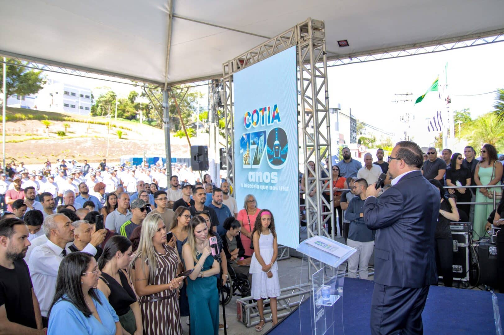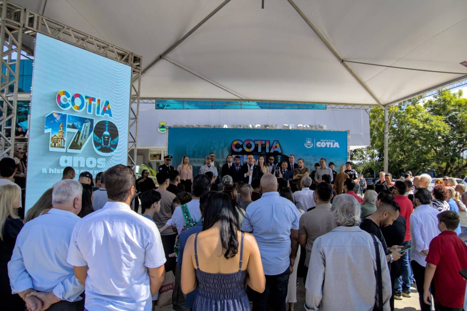 As comemorações pelos 170 anos de Cotia começaram cedo. Antes mesmo do amanhecer, equipes já se organizavam no recinto em frente à Prefeitura para receber o público, que compareceu em bom número para acompanhar a abertura oficial das festividades.