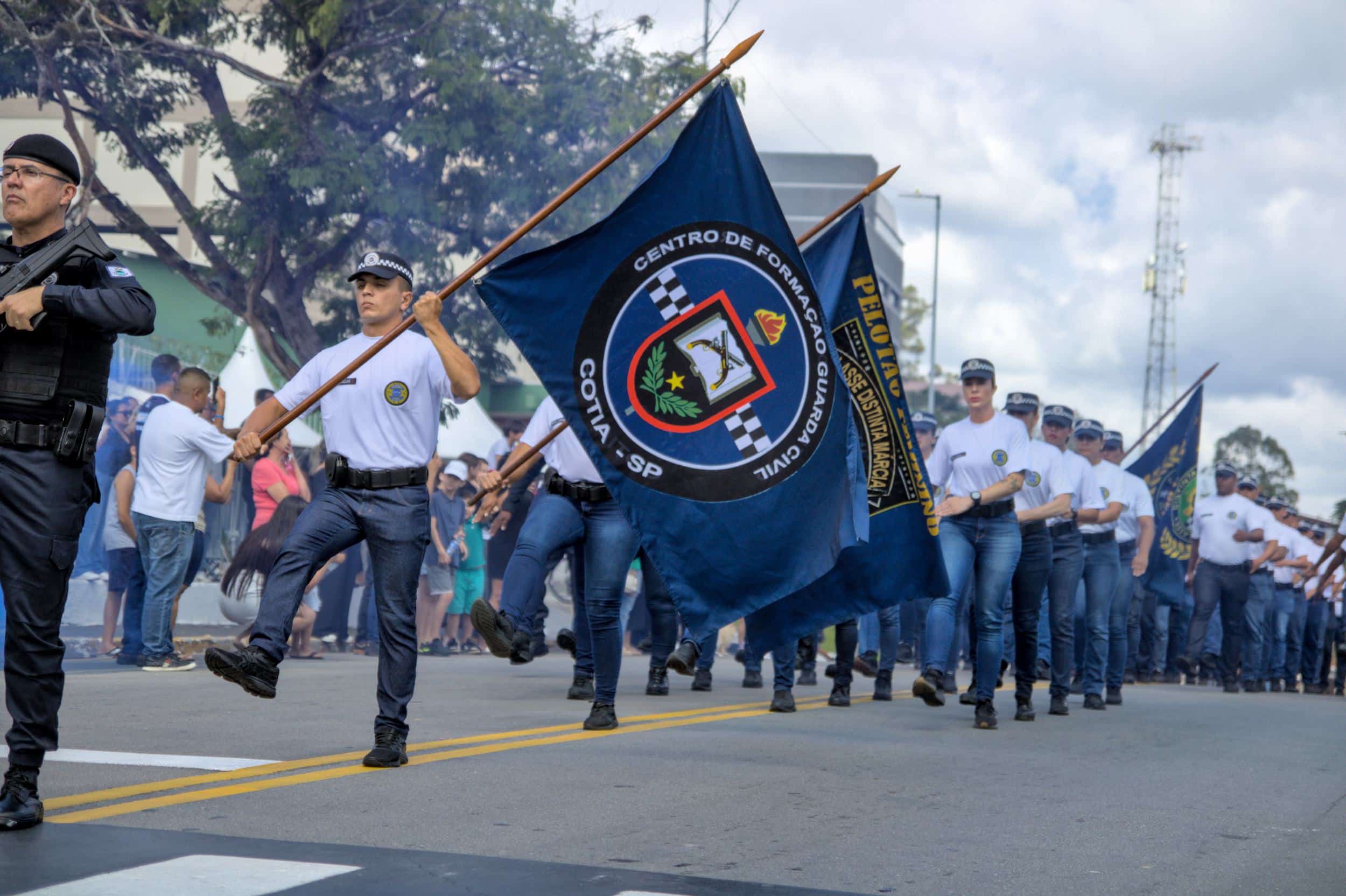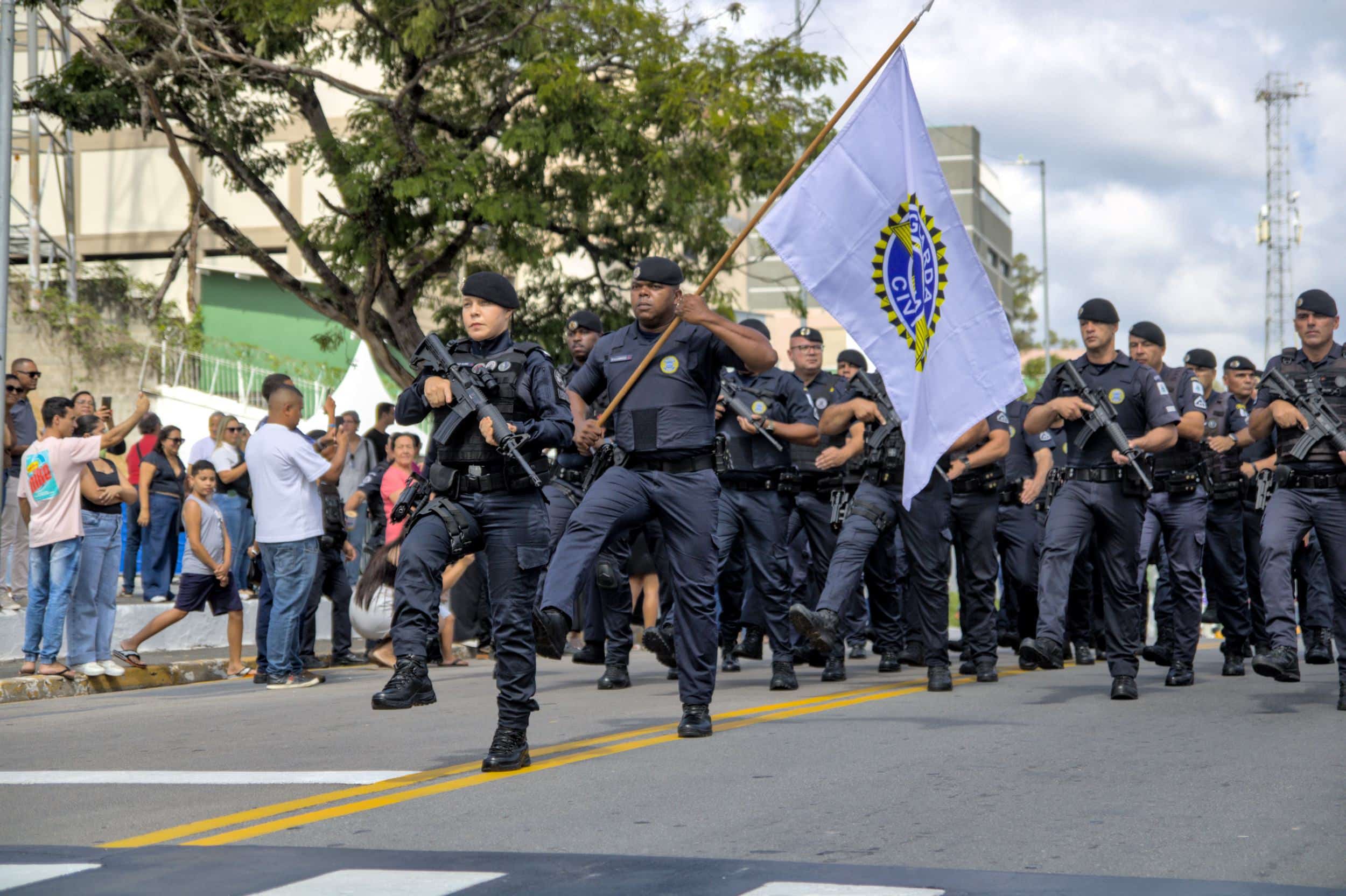 Enquanto a solenidade cívica não tinha início, o público acompanhou a apresentação dos recrutas da Guarda Civil Municipal, que estão prestes a iniciar suas atividades nas ruas, reforçando a segurança na cidade.