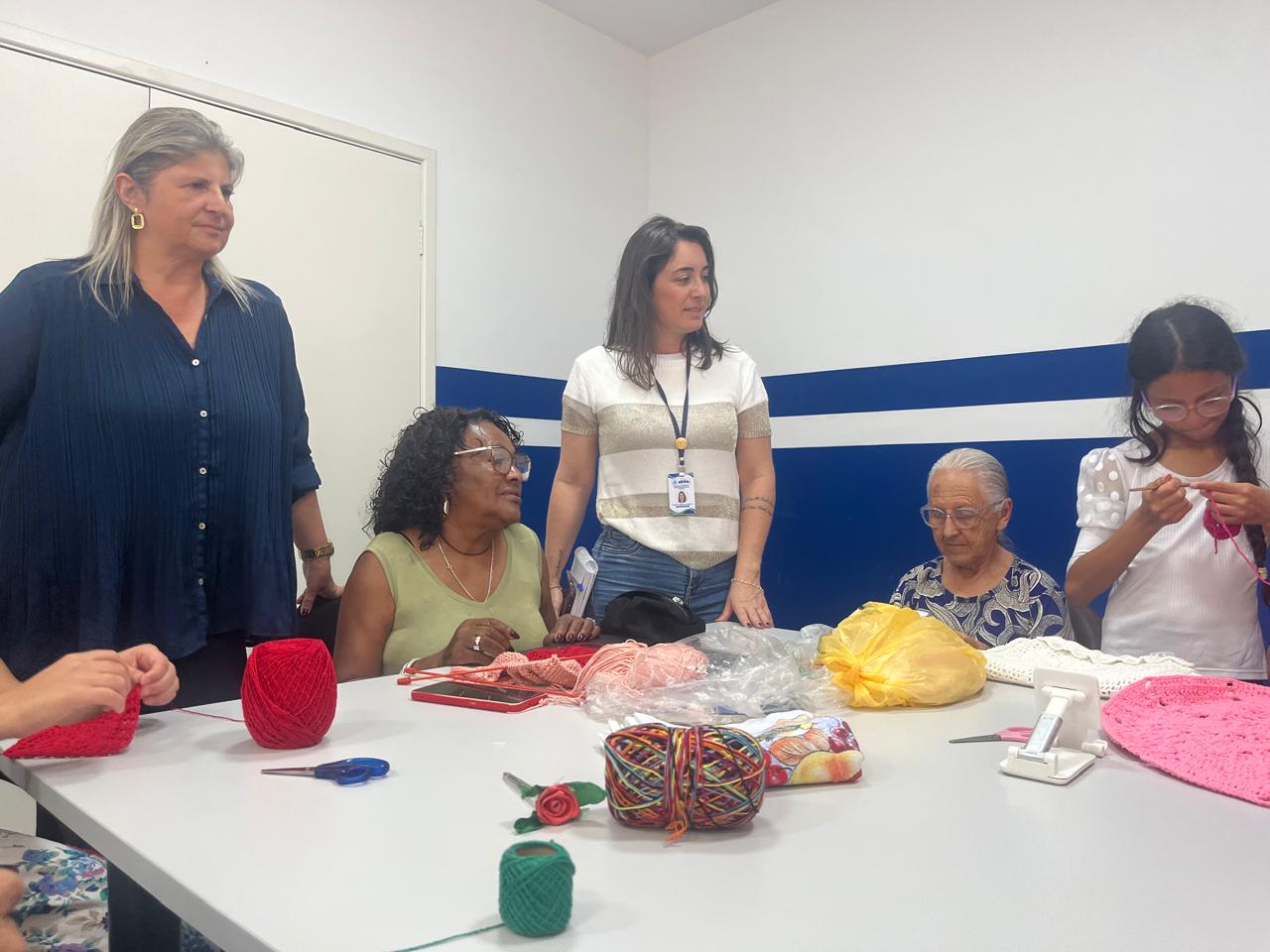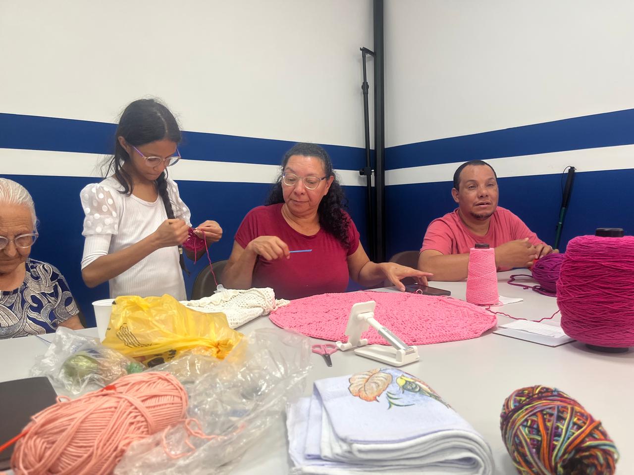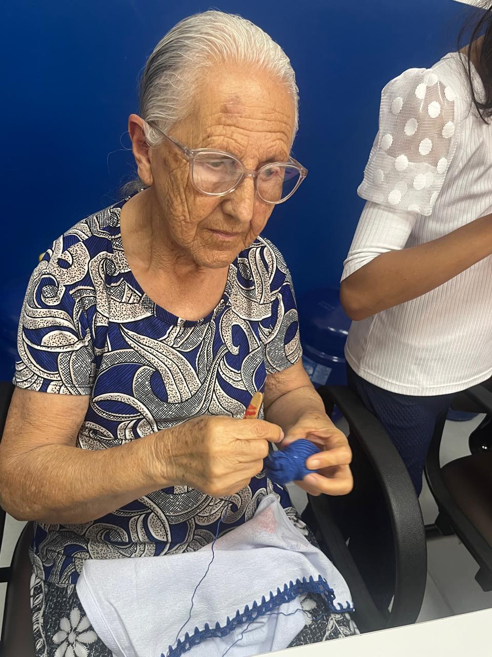 Entre os participantes desta turma estão ainda, a dona Maria, de 81 anos; a Maria das Graças de 63. A Rosemeire, que afirmou que tem problemas de saúde e, com motivação, aprendeu a fazer crochê há três semanas; e a Andressa, que transpôs as barreiras da deficiência auditiva, e está incluída na turma aprendendo novas atividades.