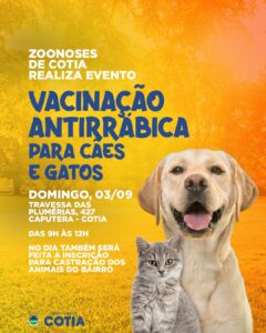 Zoonoses realiza vacinação antirrábica e inscrição para castração de cães e gatos no Caputera 28/08/2023