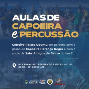 Inscrições abertas para aulas gratuitas de percussão e capoeira