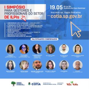 Inscrições abertas para o I Simpósio para Gestores e Profissionais que atuam em ILPIs de Cotia 11/05/2023