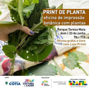 Domingo, 23/06, tem mais uma etapa da oficina ‘Print de Planta: Impressão Botânica com Plantas’ 18/06/2024
