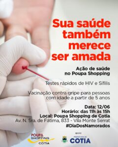 Dia dos Namorados: Saúde de Cotia realiza testagem de HIV e Sífilis e distribui preservativos 04/06/2024